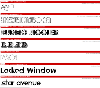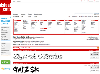 dafont.com(dafont/ダフォント ドットコム)は、1万種類を超えるフォントや絵文字(Dingbat)をダウンロードできるデジタルフォントのポータルサイトです。手書き風、エスニック風、近未来風、ホラー風、シーズンものなど幅広いデザインのフォントが掲載されています。掲載フォントはフリーウェア、シェアウェア、デモ版か著作権フリー(パブリックドメイン)のいずれかで、大半は無料で入手できます。変り種のフォントを入手して、プレゼンテーションやポスターのテキストを格好よくしてみませんか。