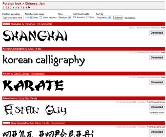 dafont.comには東洋テイストのフォントや絵文字はあるものの、日本語フォントはありません。またサイト内コンテンツと広告の差が多少わかりづらいので間違えて広告をクリックしがちです。なお一般的に、フォントをインストールしていないPCに特殊フォントのメールを送っても相手側では正しく表示されませんので要注意です。